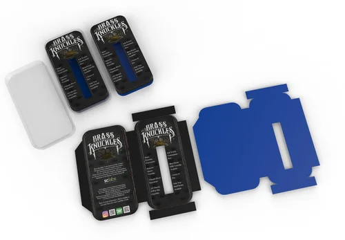 The Final result was 2 thermoformed Bagasse(byproduct of suger cane) which is compostable, that fit into an outer box. The opening flap has a magnet for a satisfying "snap" when closed.